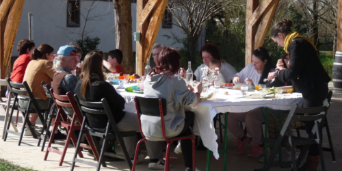 Douze participant.es étaient réunis pour l’occasion : adultes et enfants se sont prêtés main forte aux fourneaux pour dresser la belle tablée printanière qui les a régalés en plein air.