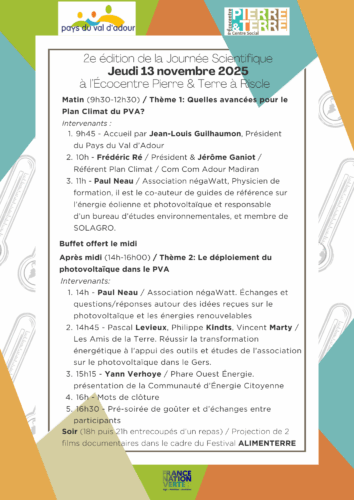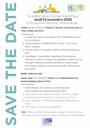 Pierre & Terre a le plaisir d’accueillir la deuxième édition de la Journée Scientifique de « Lutte contre le dérèglement climatique et la précarité énergétique » du Pays du Val d’Adour.